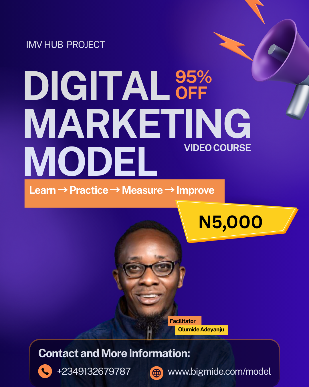 This course teaches a step-by-step digital marketing model that helps you attract customers online and turn them into paying buyers.